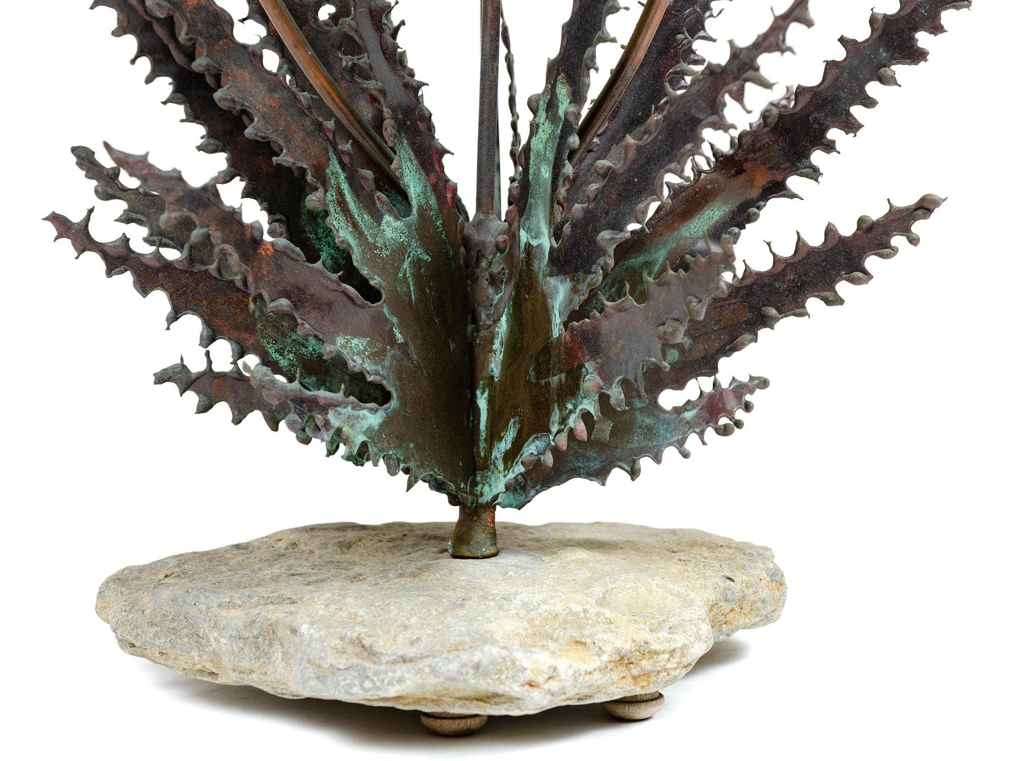 From Steck’s 'Desert Flower’ series, this table top sculpture exhibits, per an America House advertisement in Craft Horizons January/February 1965 (which illustrates this sculpture), “sizzle blooms of burnished copper on long-stemmed bronze and a fantasia of (brown-copper) foliage”. Decidedly John Steck's work but unsigned.