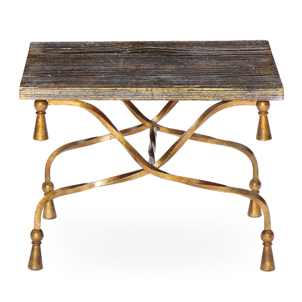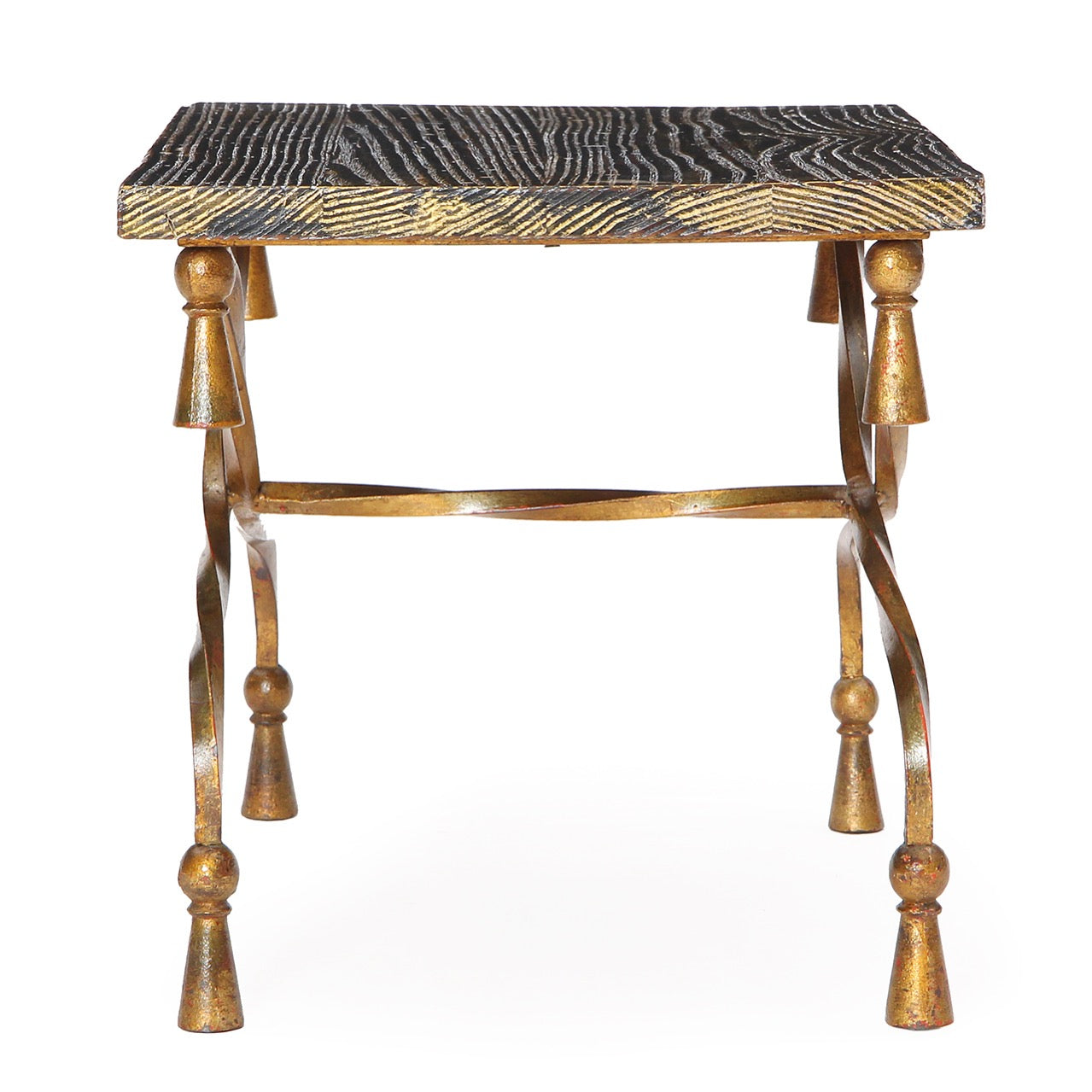 An exquisite side or sofa table with a gilded base in the form of ropes with tassel ends.