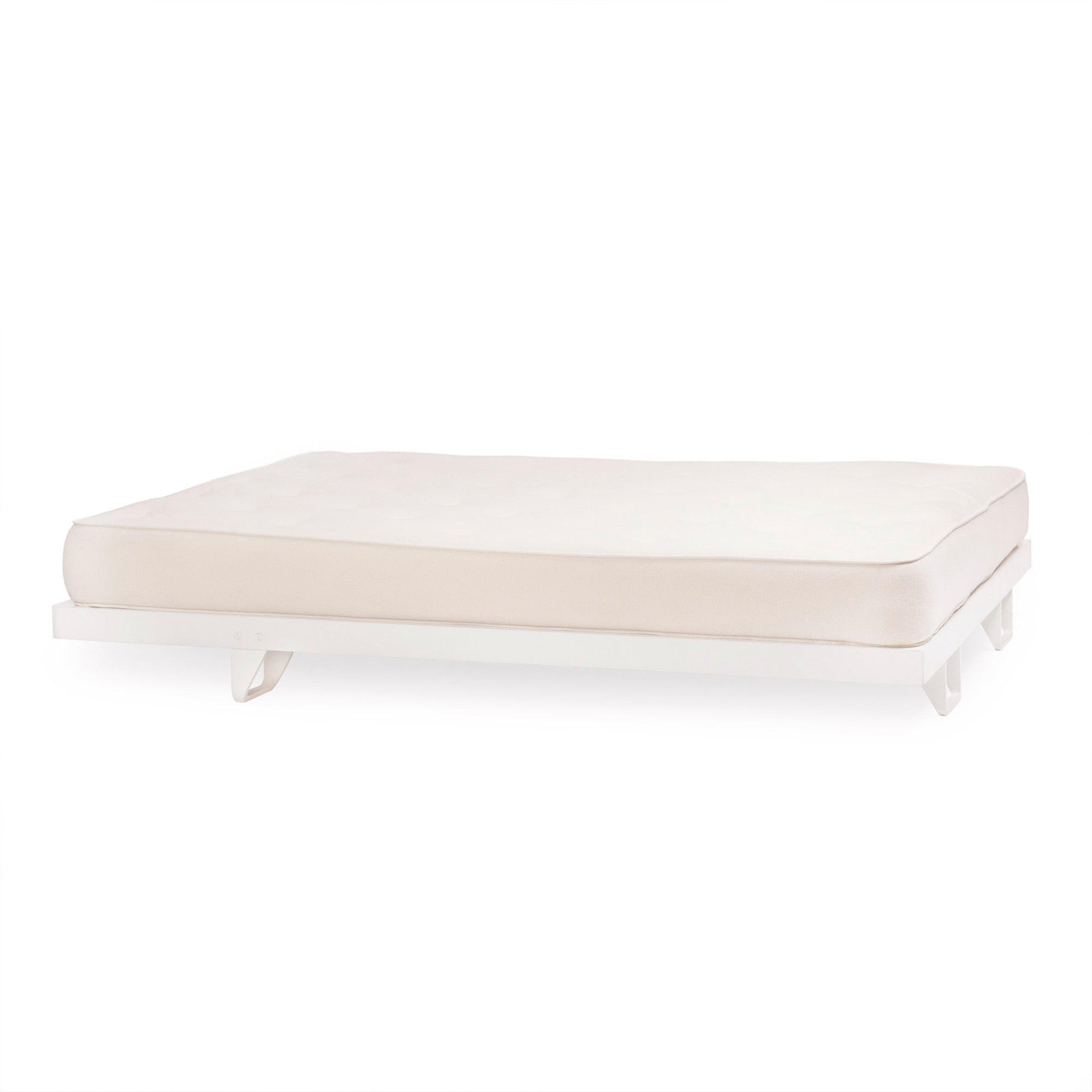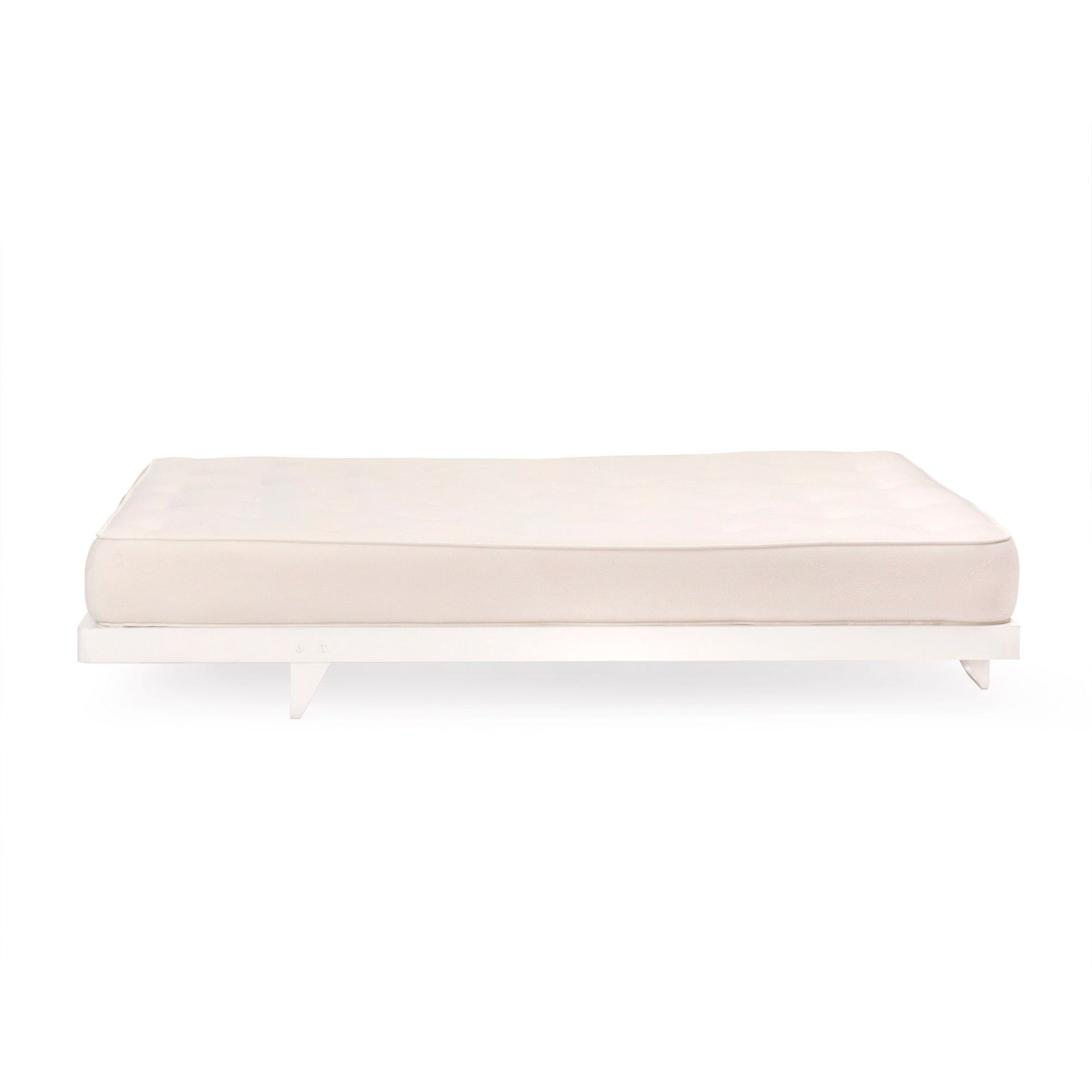 Handcrafted studio-made custom steel bed platform, painted white with a perforated steel top. (Queen)