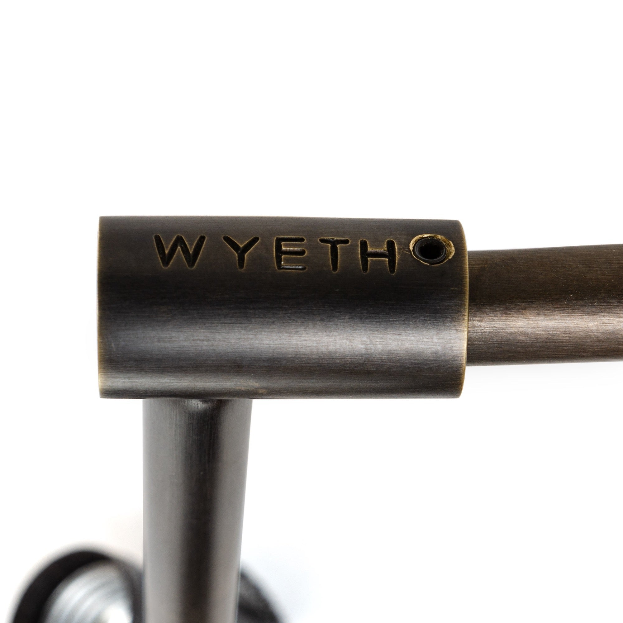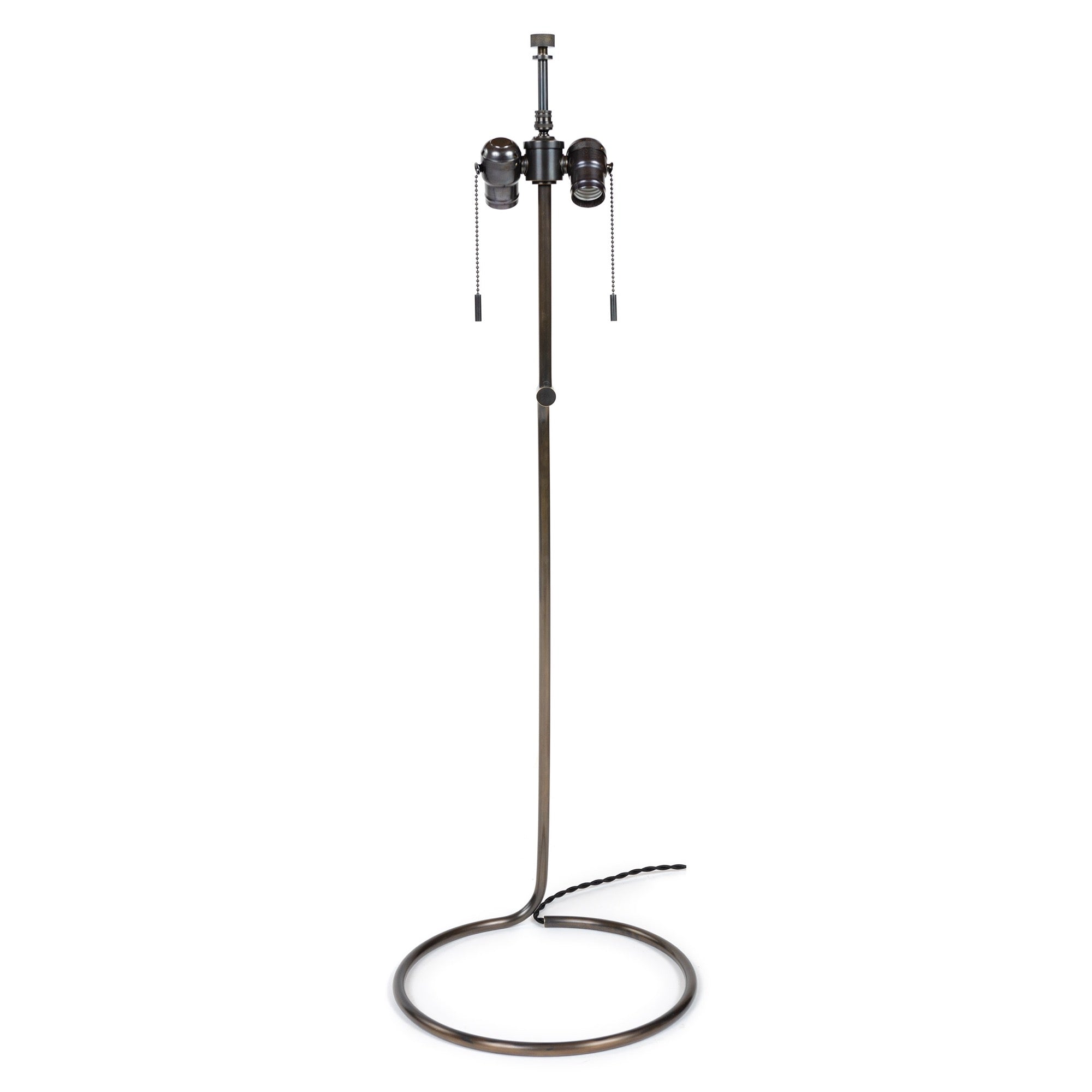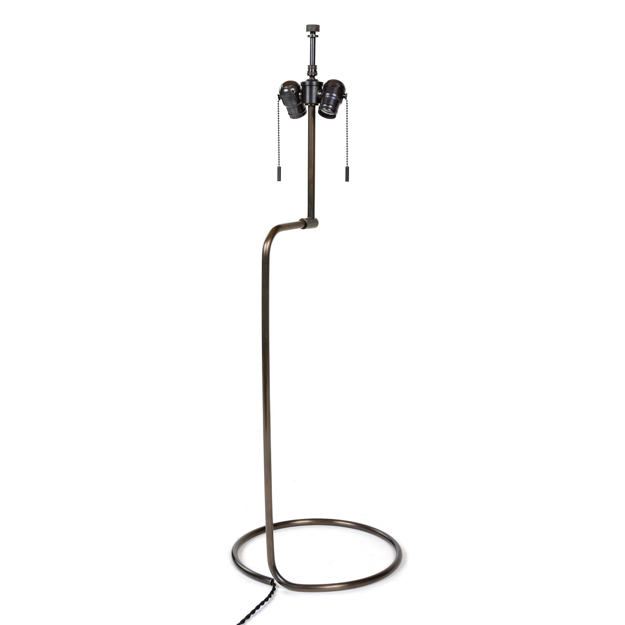 A spare, sinuous table lamp made from a continuous coil of thinly gauged blackened bronze tubing. Available in polished, brushed, patinated or blackened finishes. Lead time 6-8 weeks. Made by the WYETH Workshop in Brooklyn, NY.