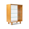 A solid walnut open cabinet or vitrine with three adjustable glass shelves and a solid glass paneled back. This cabinet has only one glass door.