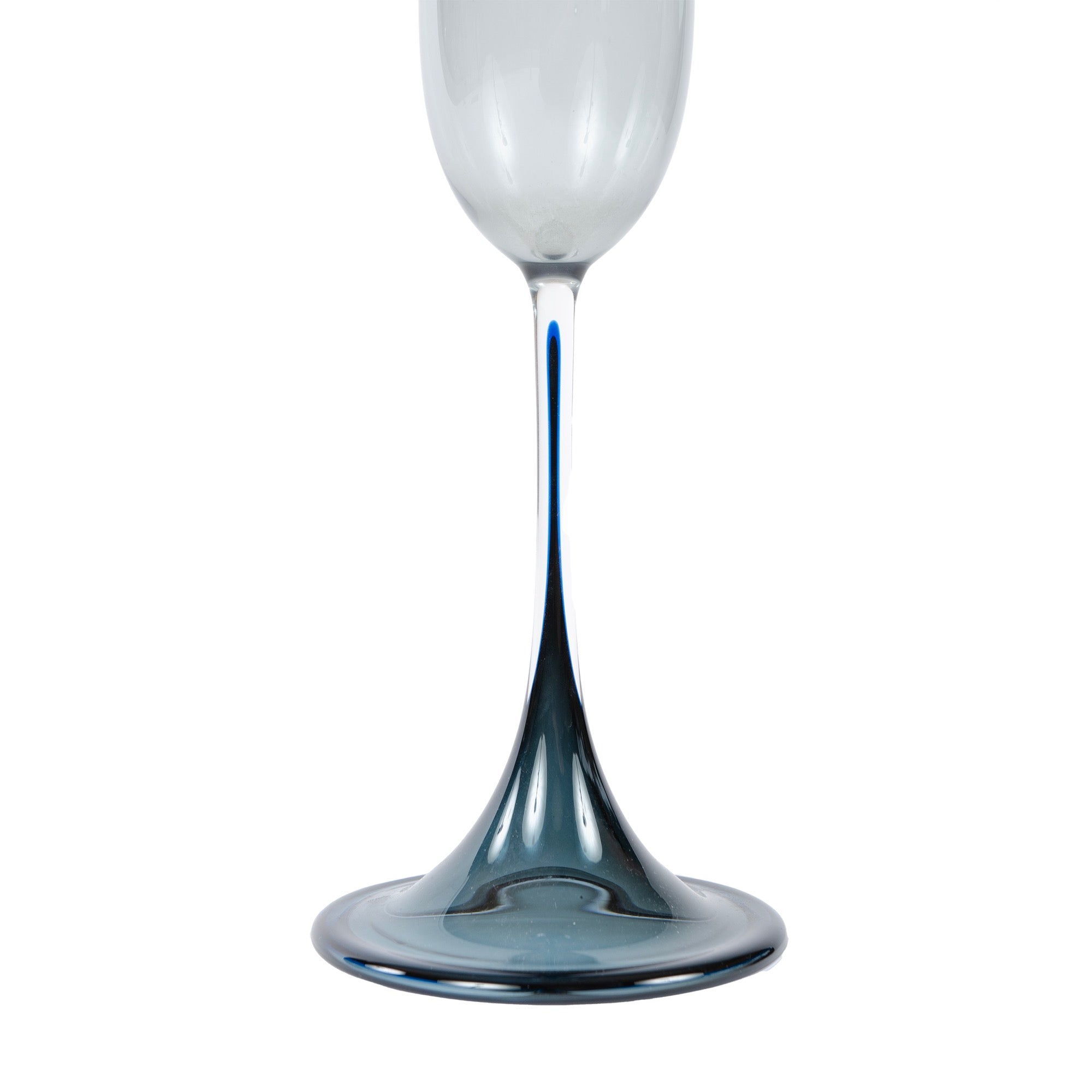 Nils Landberg designed and Orrefors Glasbruk produced from 1957 until 1981 this elegant form, a series of stemware known as ’Tulpanglas’ hallmarked by its elongated stem and thick rolled edge foot. Etched script signature - ‘Orrefors Expo N U 311-5-7 N.Landberg’