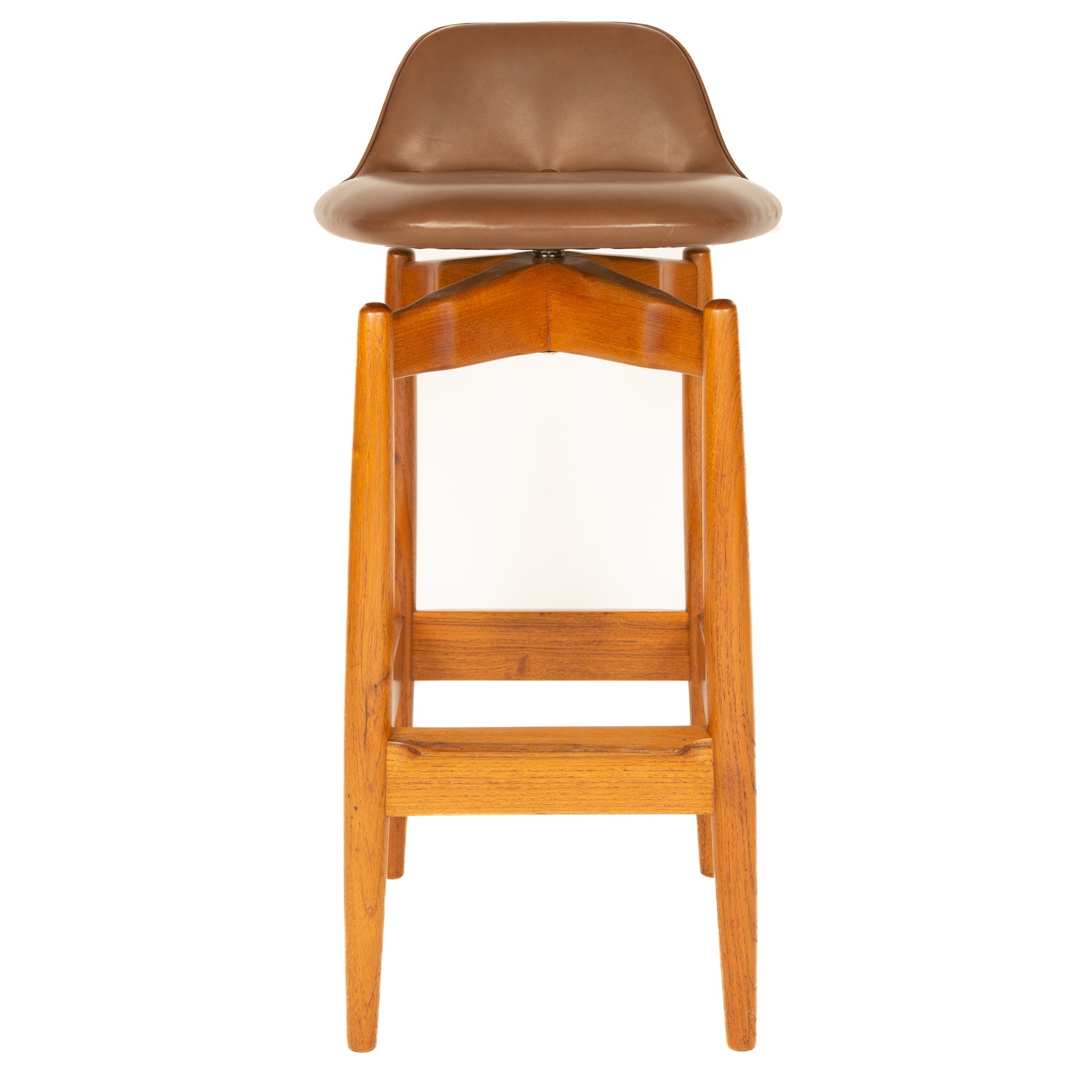 Brown Leather Bar Stool by Arne Vodder for Sibast Furniture, 1960s