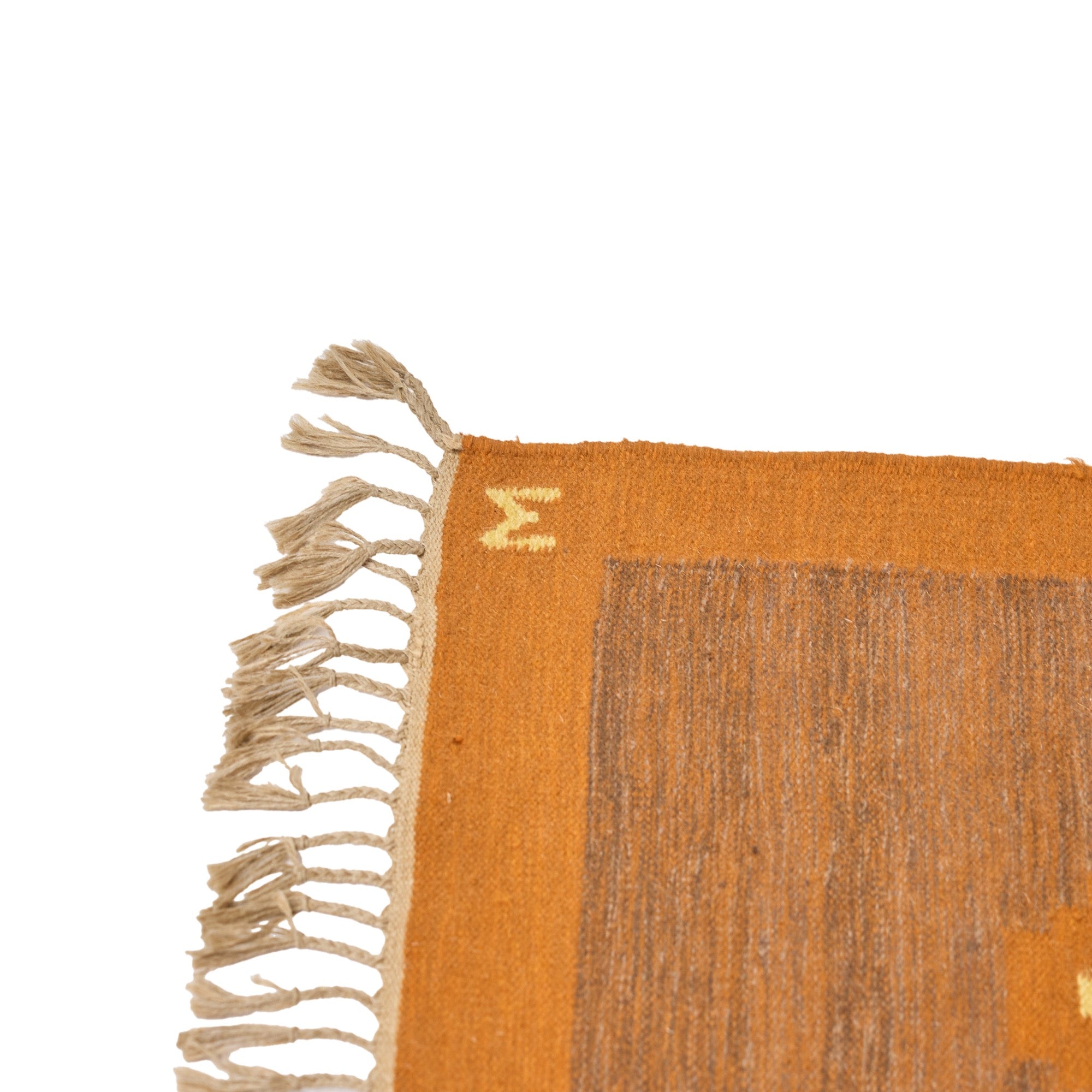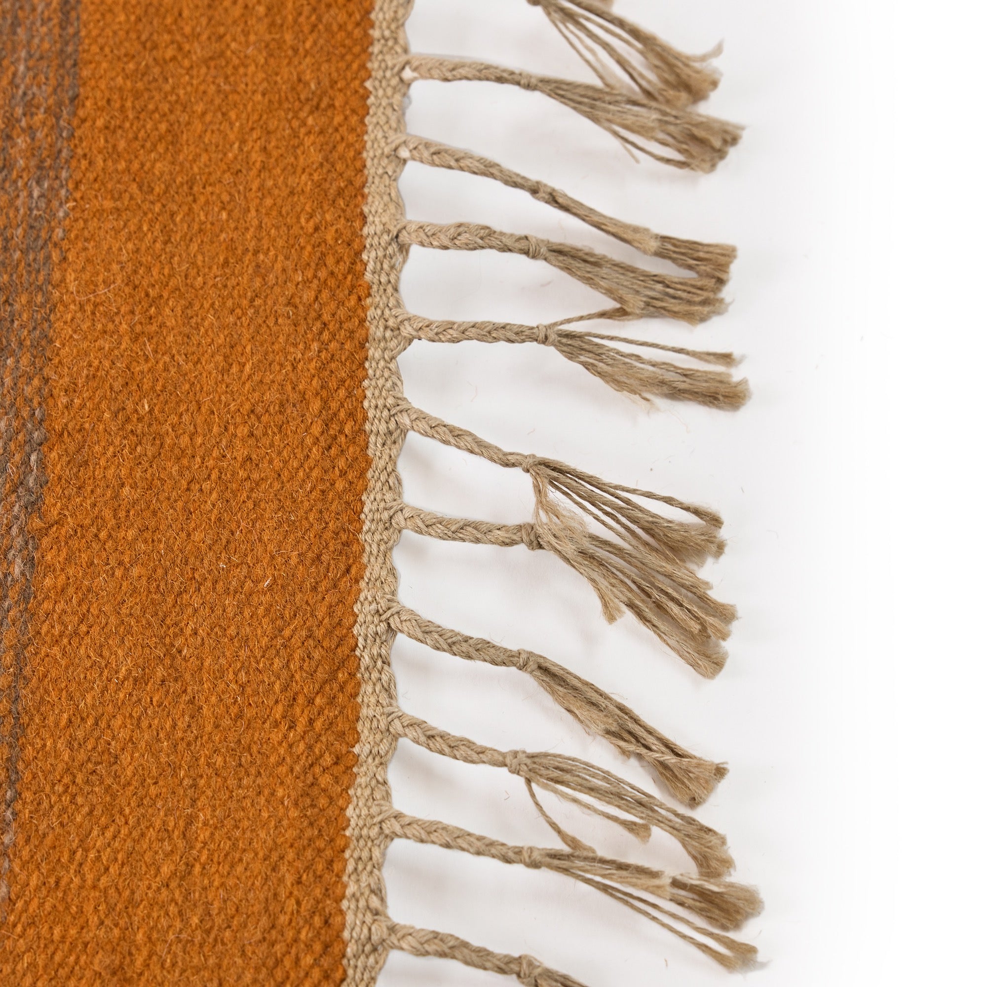 A Vintage Scandinavian wool rug. 96"x67". 4 Inch Tassels on each side.