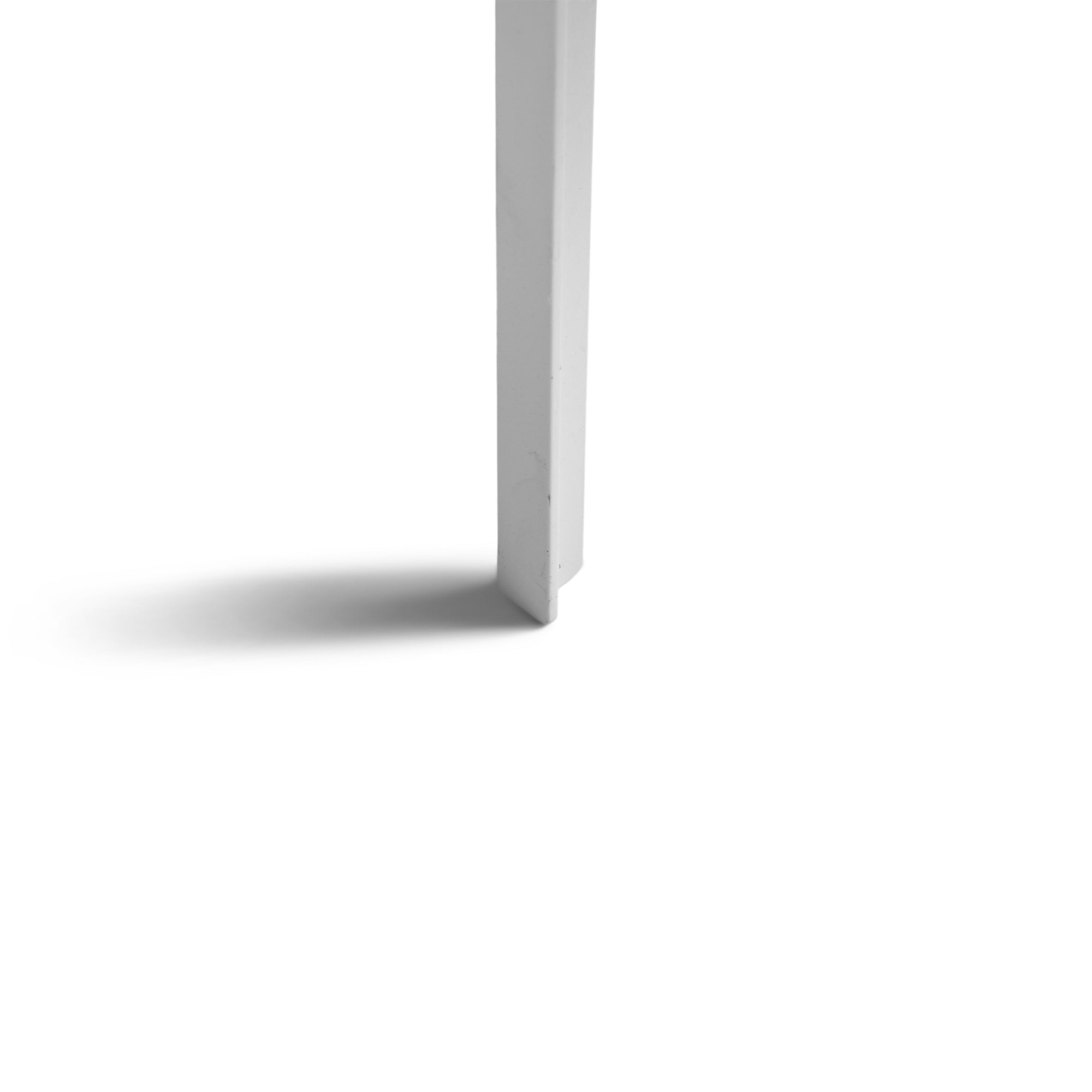 A sleek low table crafted from white enameled steel and black laminate, complete with the original manufacturer tag on the underside.