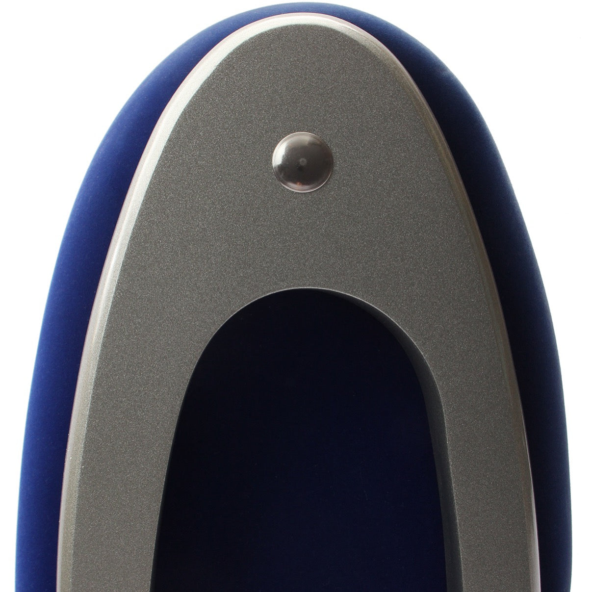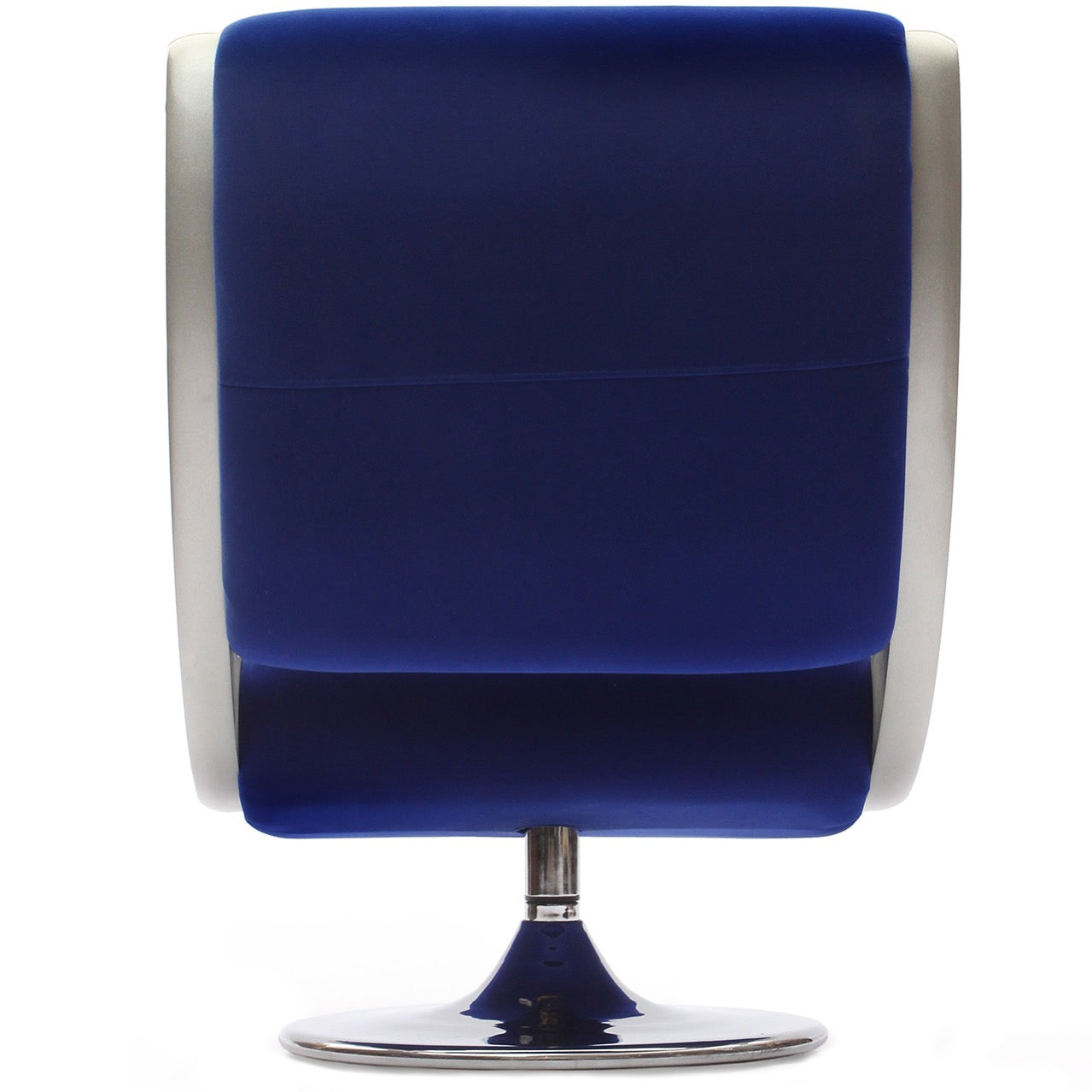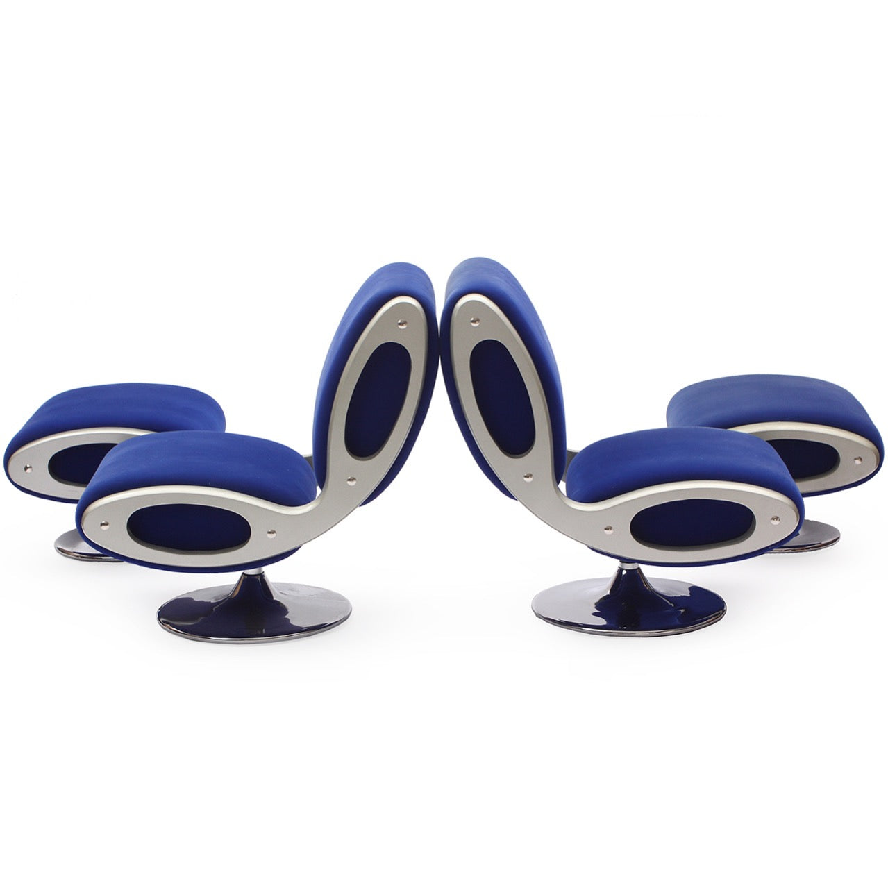 A futuristic and finely constructed swiveling Gluon lounge chair with ottoman each having chromed pedestal bases and seats of steel covered with injected foam, and sides made of lacquered polyurethane.