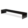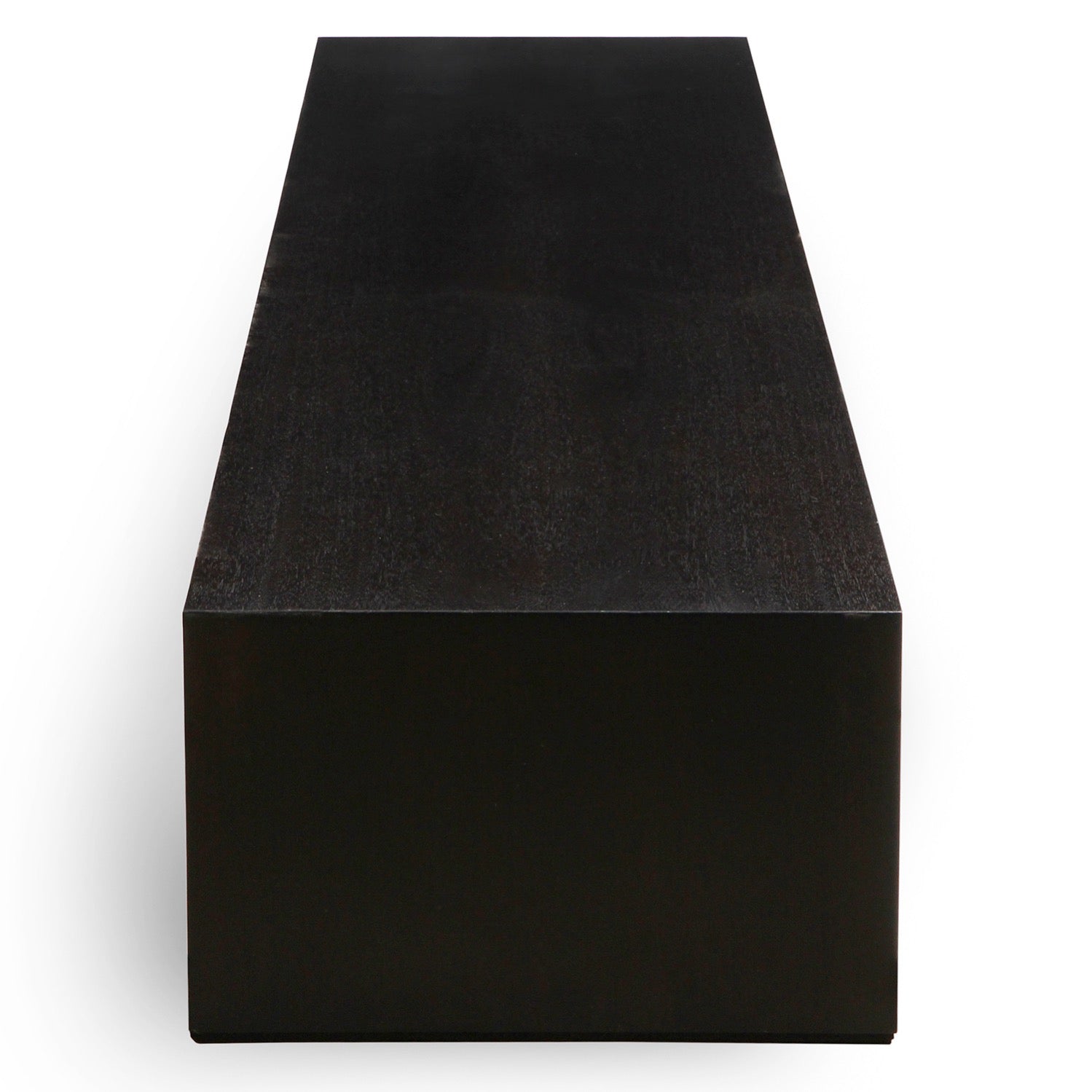An architecturally inspired long and low minimalist walnut table with simple profile and dark finish. Solid construction enforces the integrity of the table via a thick wooden beam running the length of the table securing the top and sides in addition to mitered corners which join the ends with the top creating one very solid structural unit suitable as a bench as well with the addition of a cushion.