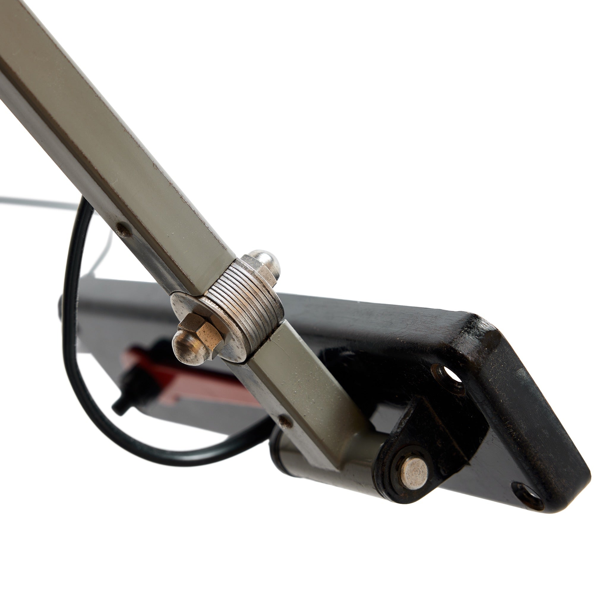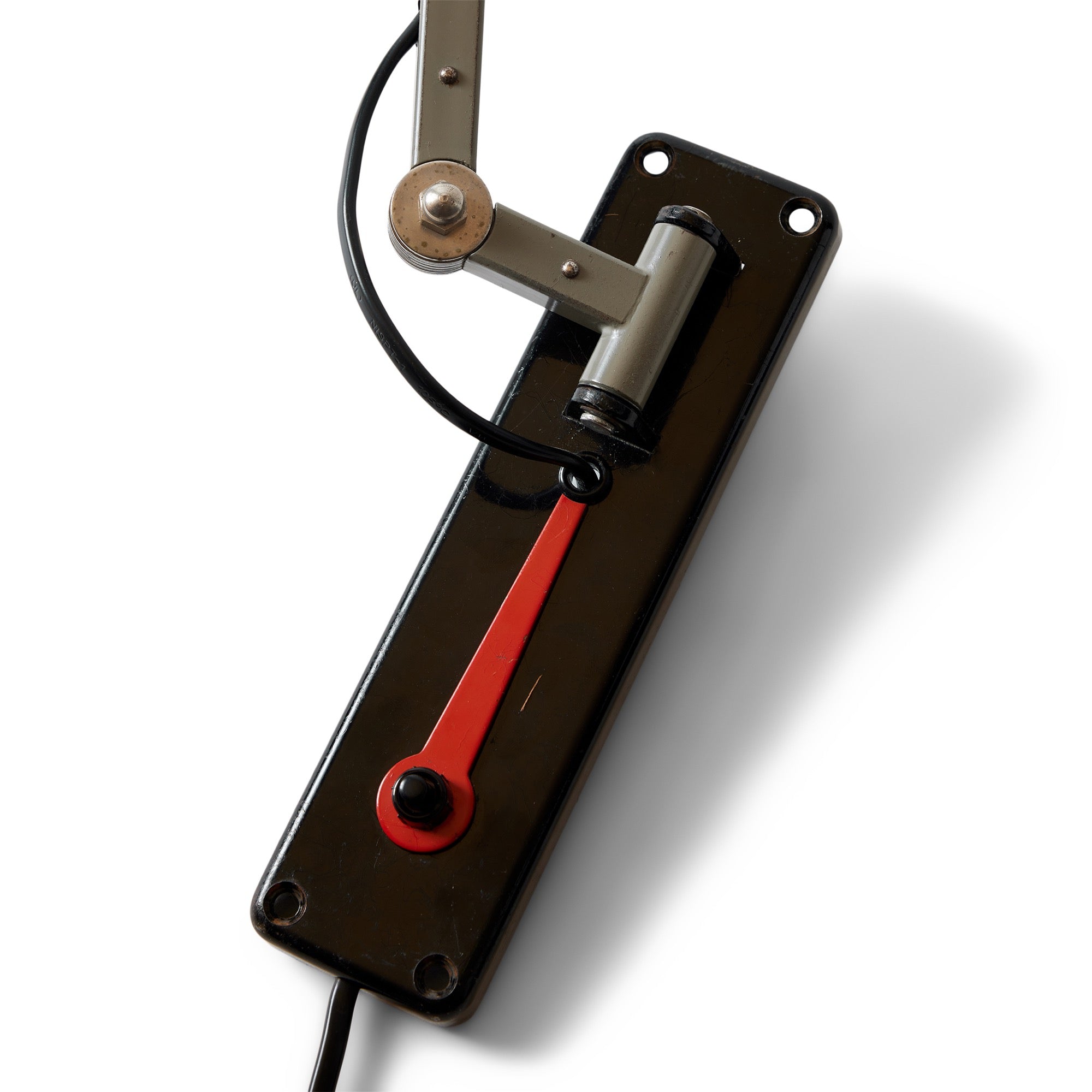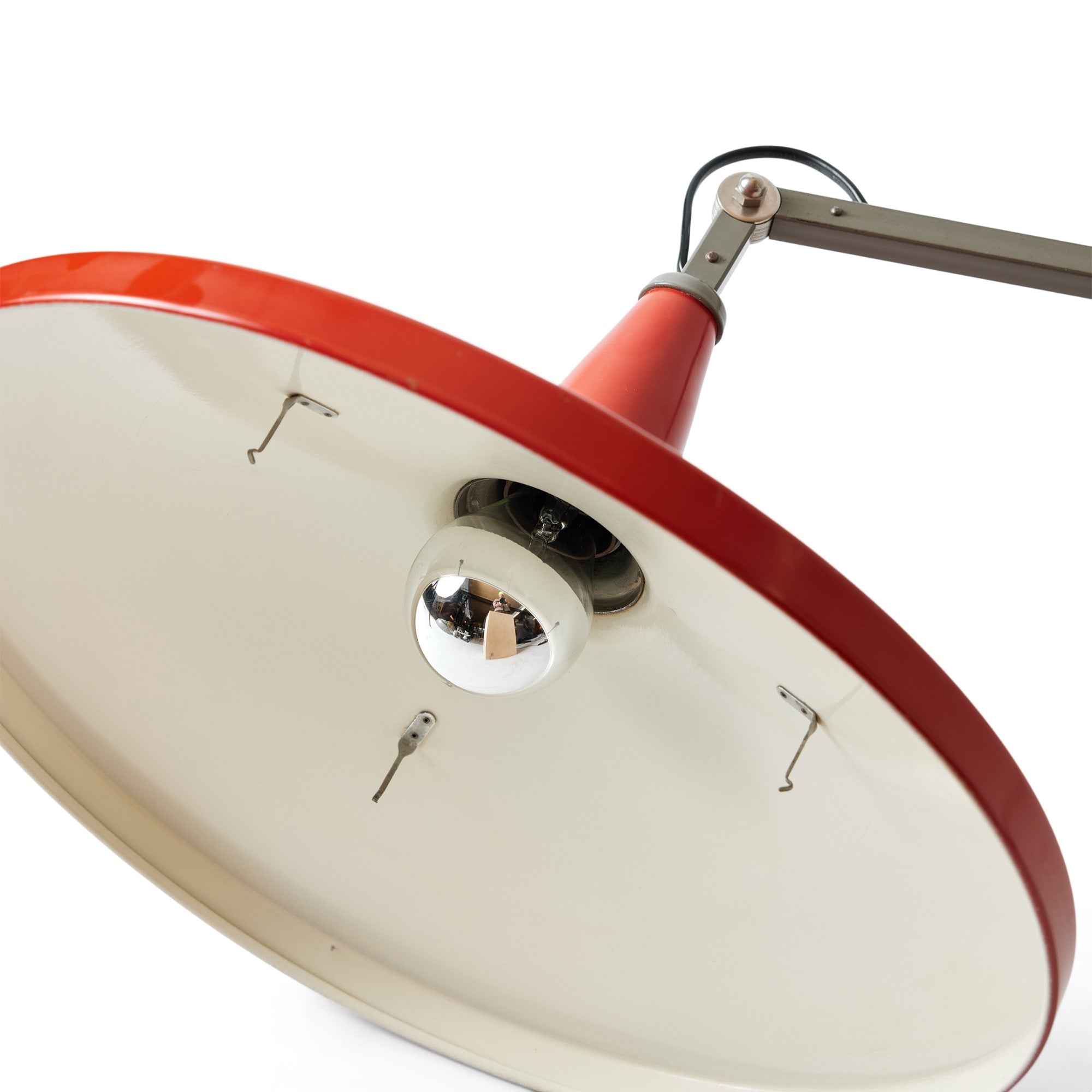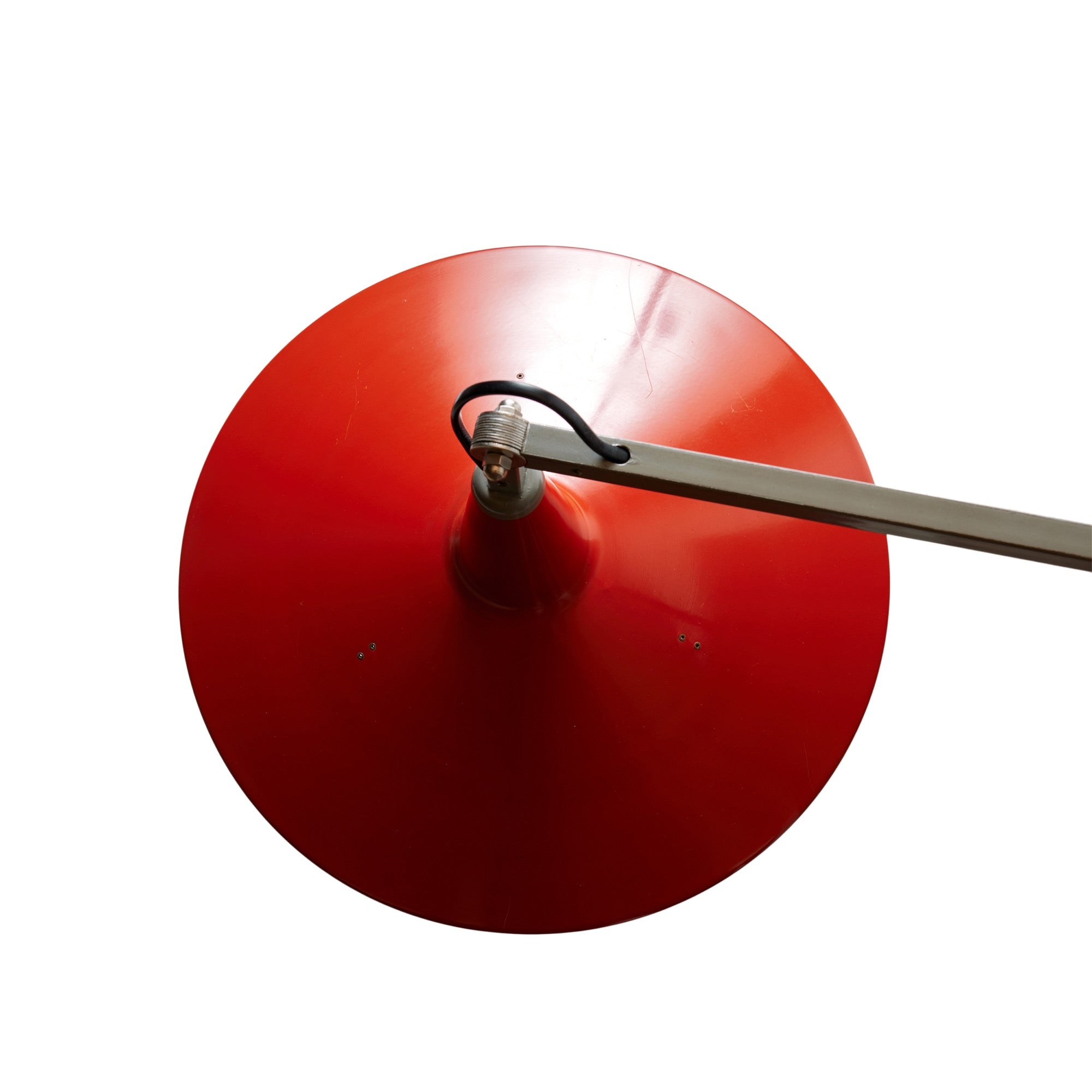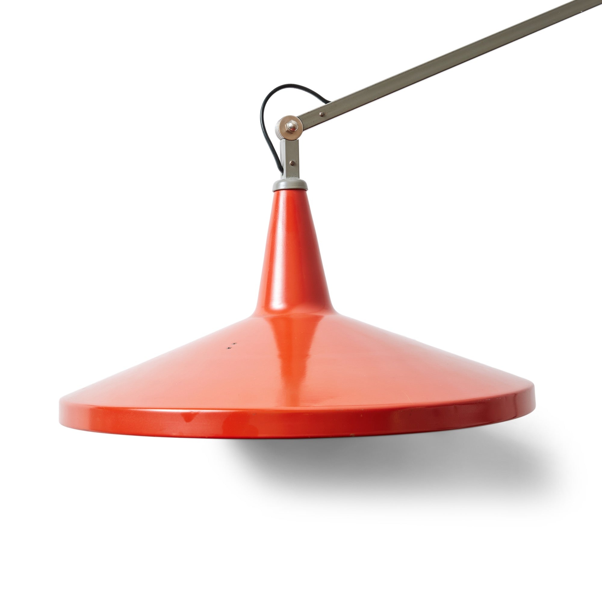 A modernist orange lacquered and steel adjustable wall lamp with a pivoting shade.