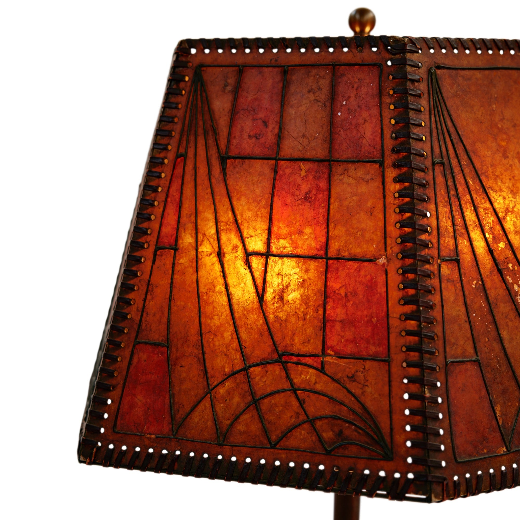Arts and Crafts Bronze and Mica Table Lamp from USA