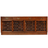 A rare woven front credenza with walnut strips interlacing unique rectangular rods. Four (4) drawers with brass pulls over four sliding doors with interior drawers and shelves.